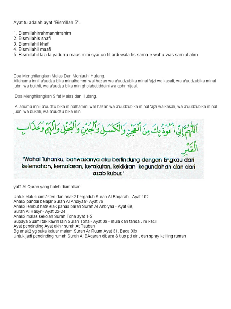 Doa Elak Malas from imgv2-1-f.scribdassets.com The messenger of allah said, he who recites three times every morning and evening: (i begin this day) with the name of that allah with whose name nothing on earth or in the heavens can cause harm. He who recites three times every morning and evening: Read about bismillahillazi la yadurru ma'asmihi by hazamin and see the artwork, lyrics and similar artists. Say in the morning and in the evening (thrice): Listen to bismillahillazi la yadurru ma'asmihi online.bismillahillazi la yadurru ma'asmihi is an arabic language song and is sung by hazamin inteam.bismillahillazi la yadurru ma'asmihi, from the album zikir keamanan (zikir dan doa menghadapi melapetaka dan wabak penyakit), was released in the year 2016.the duration of the song is 1:55. About bismillahillazi la yadurru ma'asmihi. `uthman bin `affan (radhiallahu anhu) reported:
